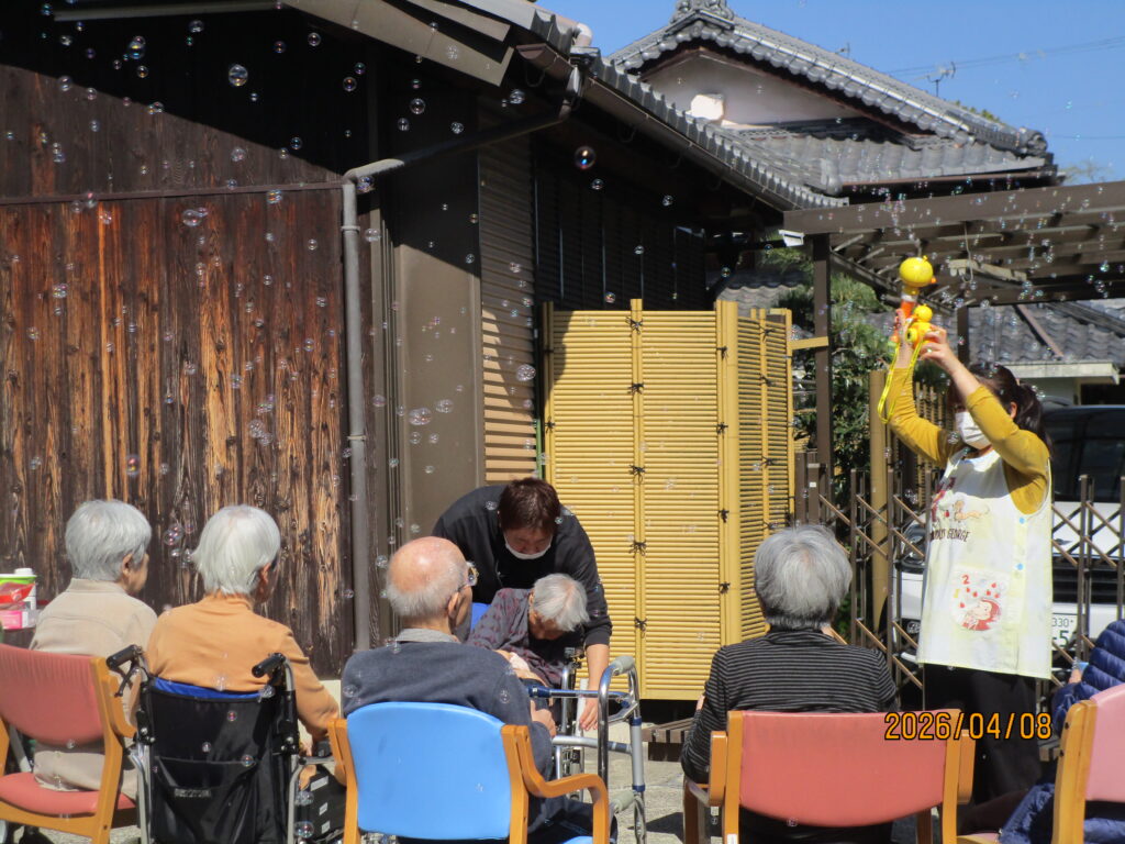 また、シャボン玉を飛ばすと、「きれいだね」「懐かしいね」と嬉しそうな声も聞かれ、皆さま楽しまれているご様子でした。