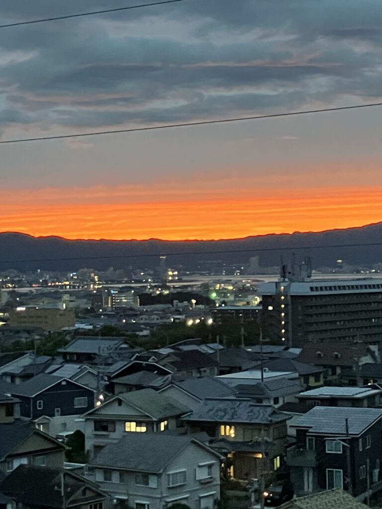 デイサービスがあるマンションの最上階から、夕日と琵琶湖がとてもきれいでした✨