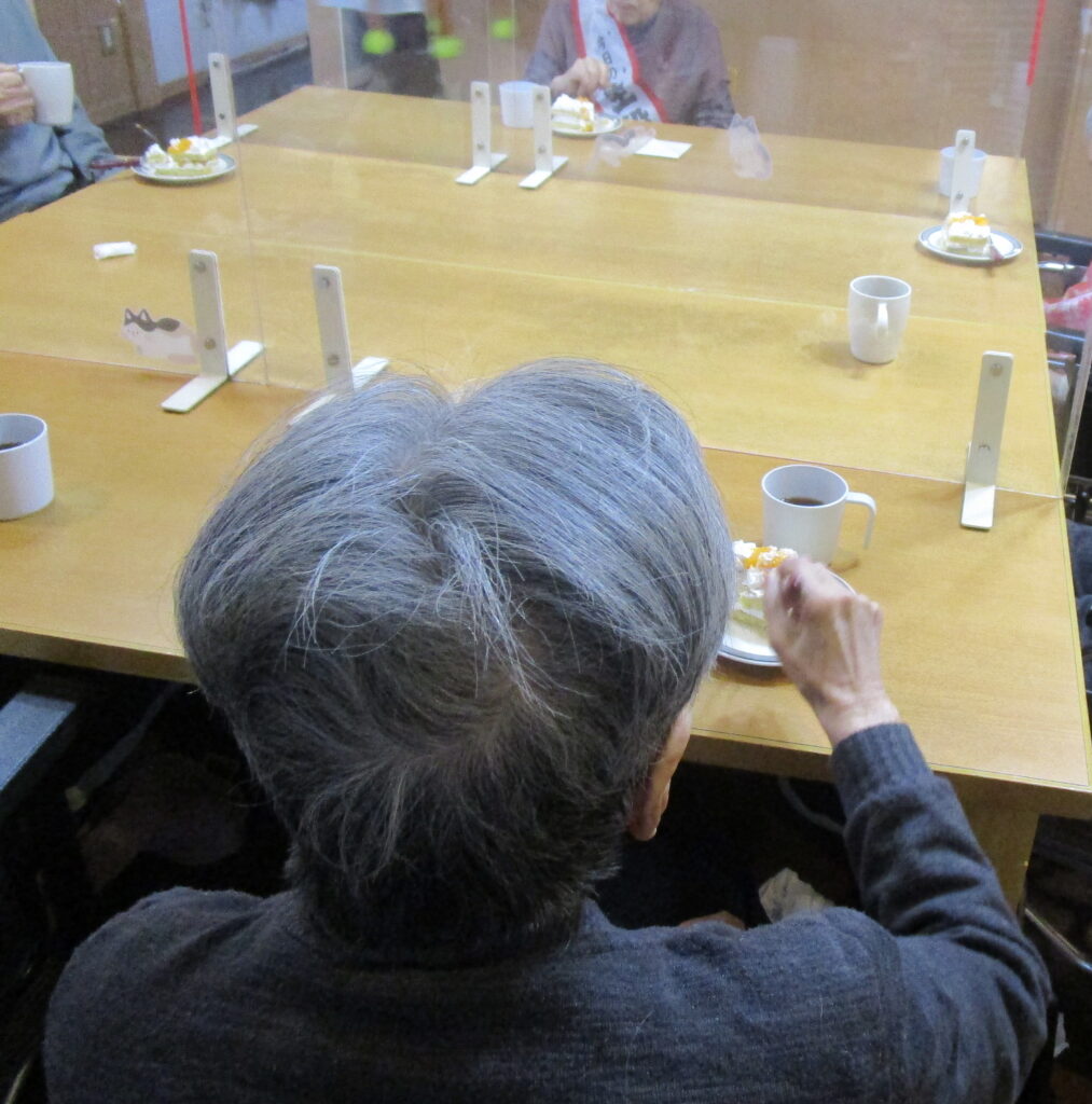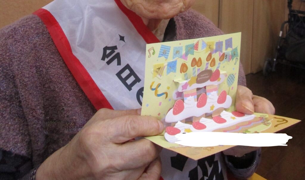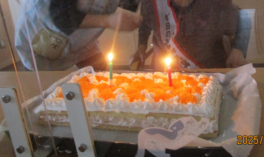 今月もグループホームでは、お誕生日のを迎えられた方がいらっしゃったので、おなじみの大きなケーキでお祝いをさせていただきました!