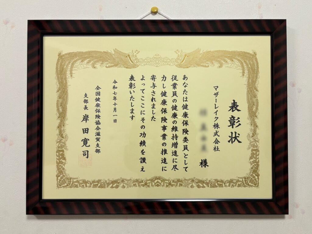 健康保険事業に対して積極的に協力し活動に取り組んでいる健康保険委員功労者として、弊社の事務長が「全国健康保険協会支部長表彰」をいただきました。