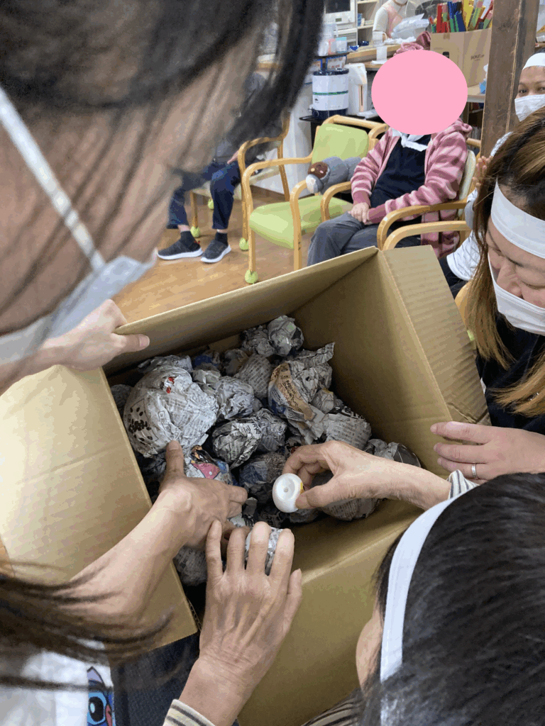 職員がしっかりとサポートしながら利用者様が次々と玉をかごに入れて行きます!結果はッ