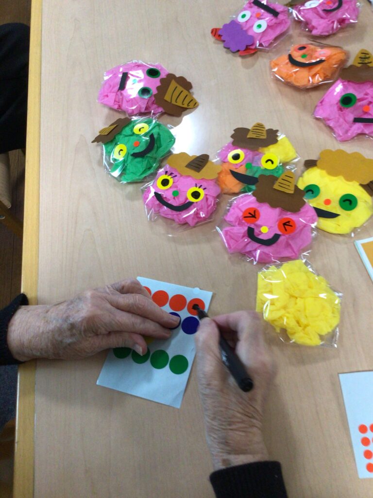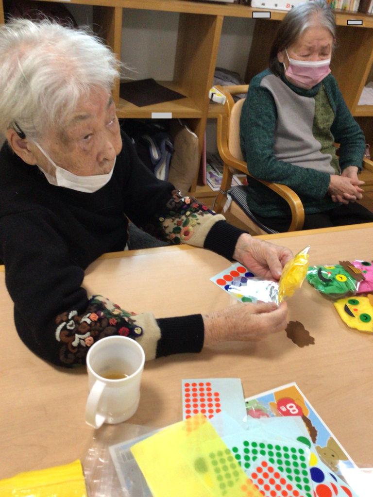 用意していたくす玉がなかなか引っかかっていたのか開かず、やきもきしてしまいましたが、最終的には力強く引っ張って下さり事なきを得、利用者様も自然と笑みがこぼれてとても良い感じでした。