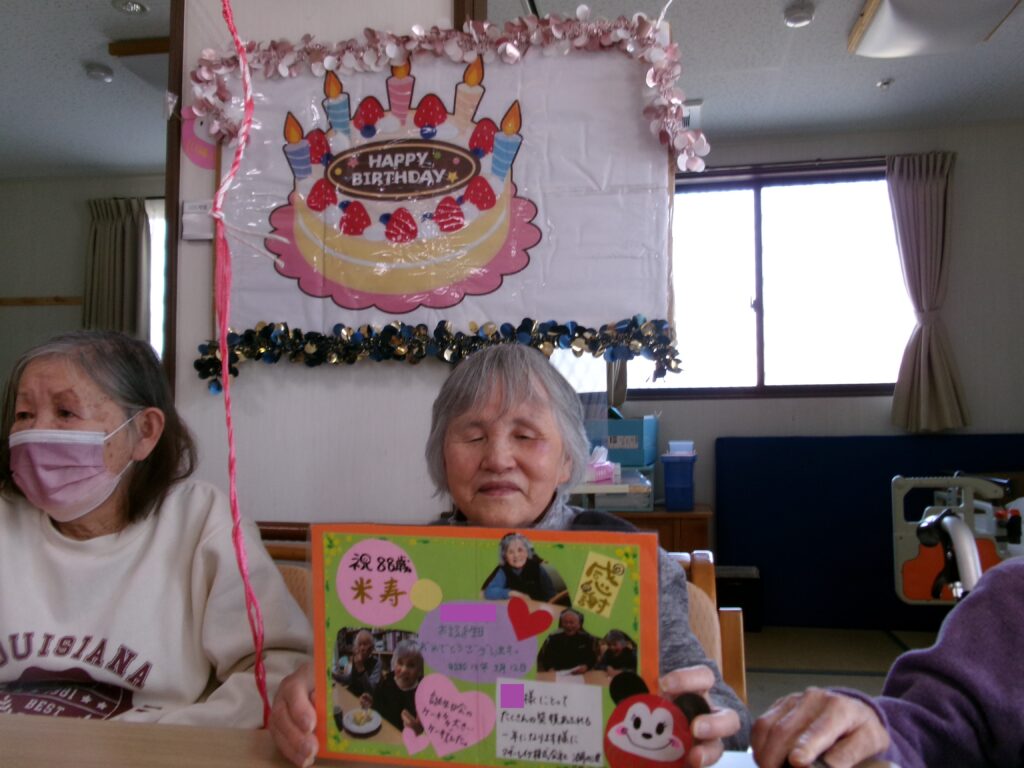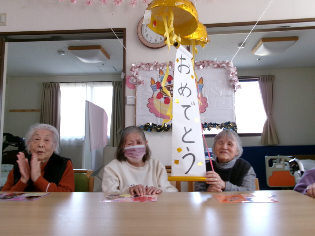 3月生まれの方が4名いらっしゃいました。普段は1~2名くらいなので普段よりも多い目でとてもにぎやかな会になりました。