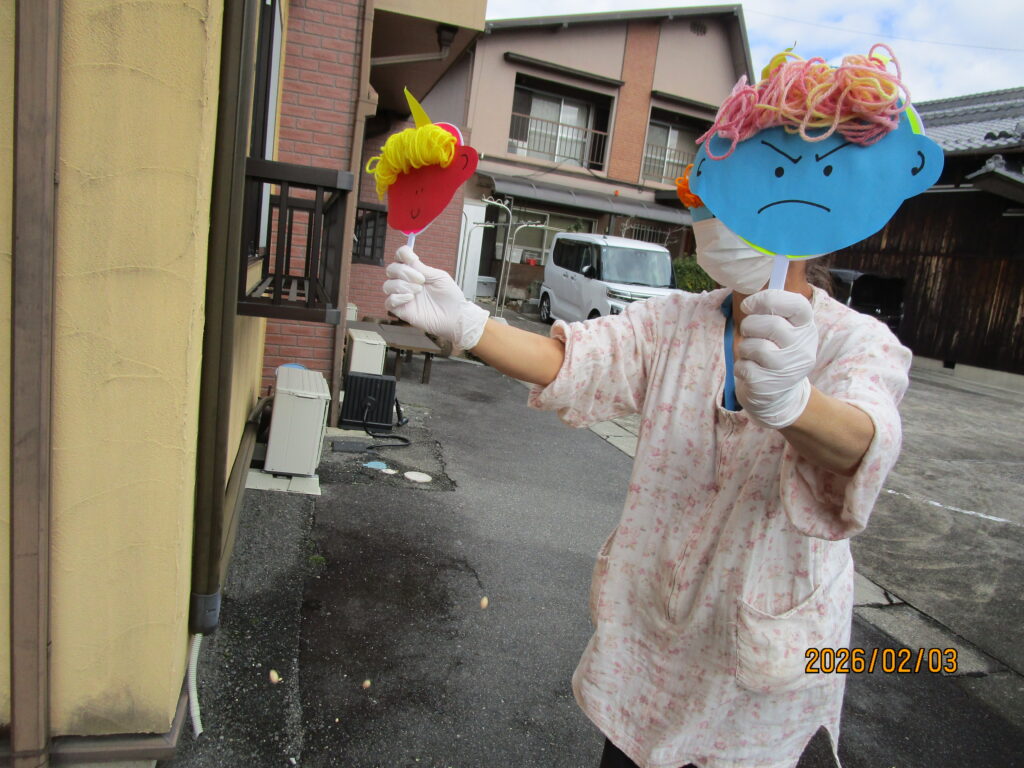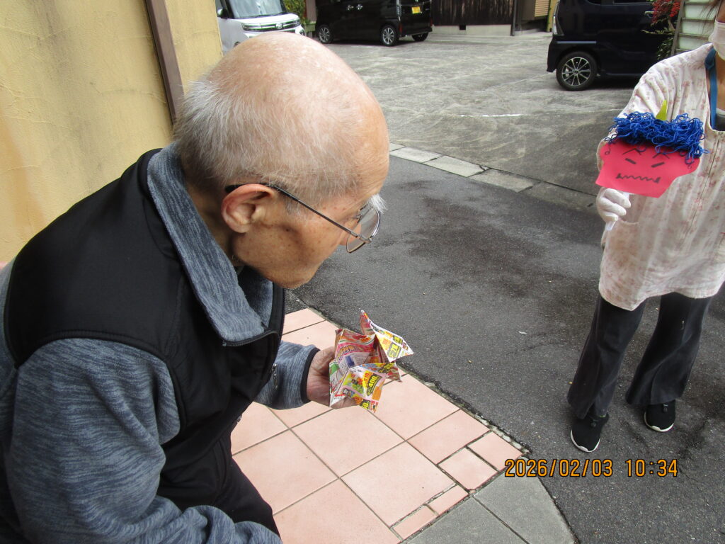 外に行きにくい方は室内で豆まきを行いました😊