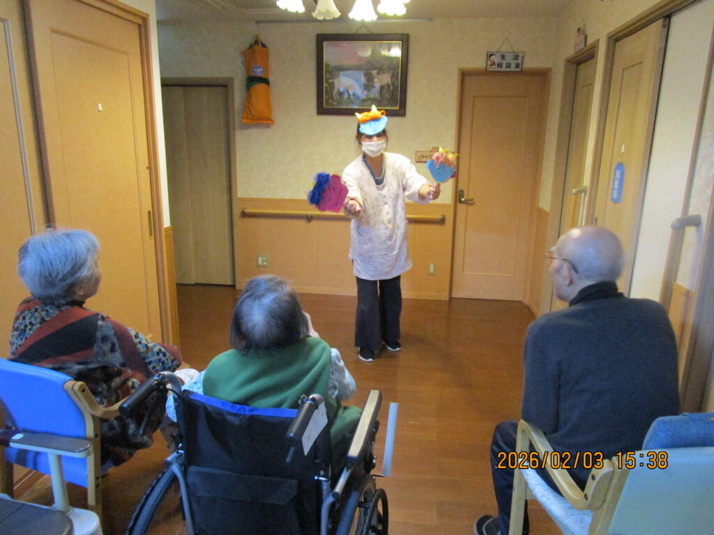 皆さんと一緒に豆まきを行いました♪