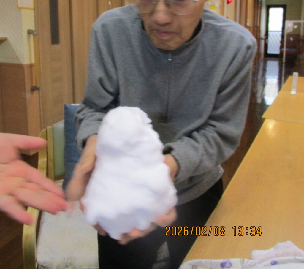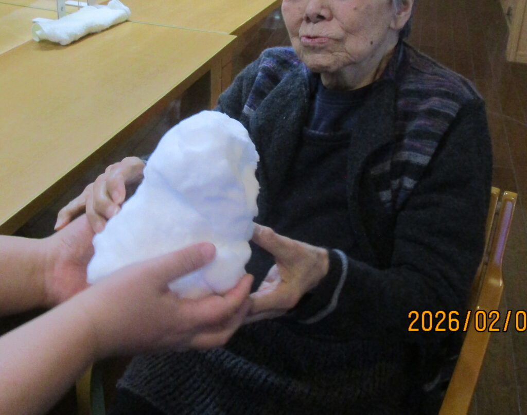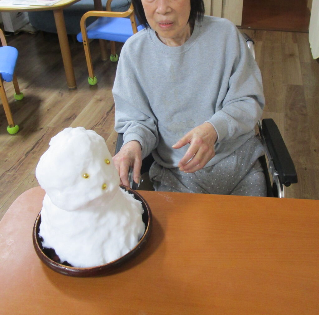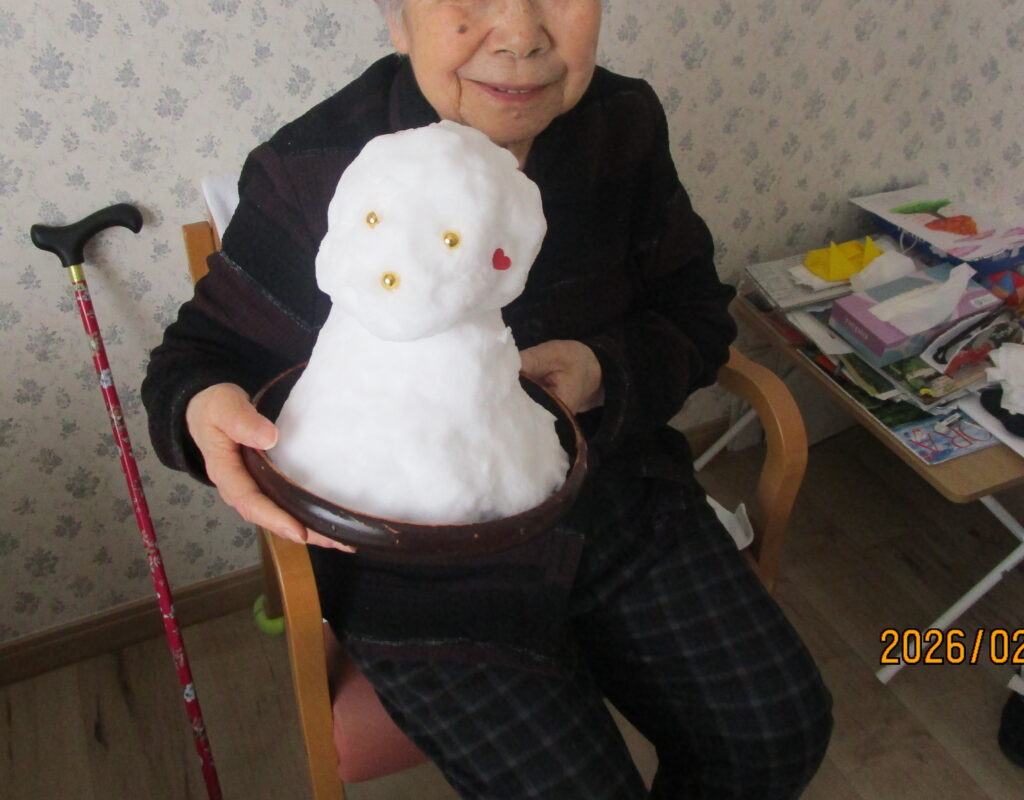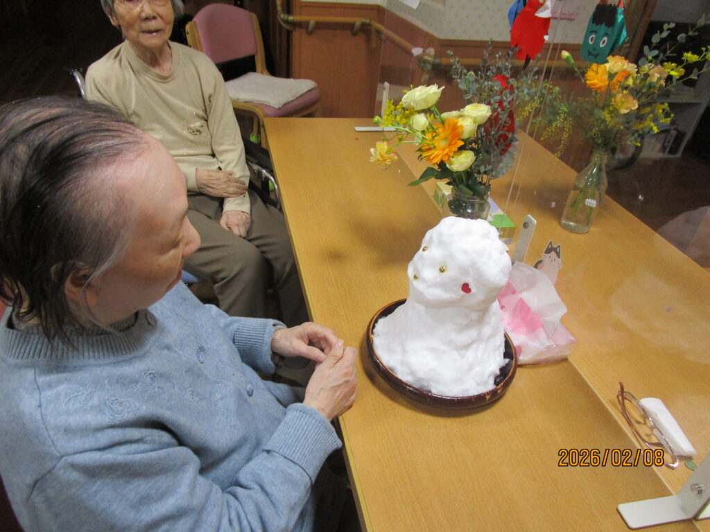 皆さん「雪が降ったんか」と驚いておられましたが雪だるまを見て喜んでおられました♪