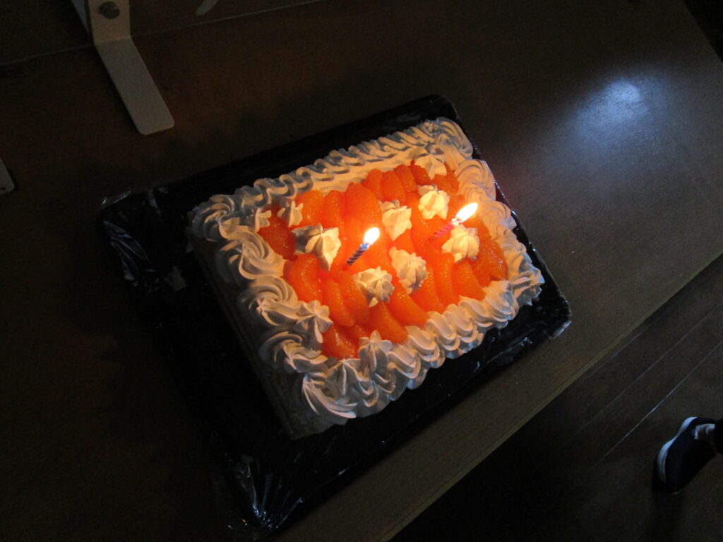 ハッピーバースデーを歌ったあとに、手作りケーキのろうそくの火に息を吹きかけて消してもらいました^^