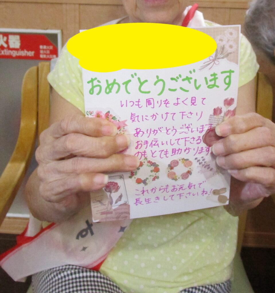 スタッフからバースデーカードをお渡しすると、嬉しそうな表情が見られました*^^*