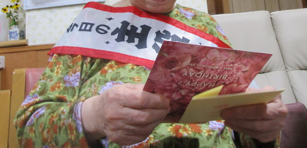 スタッフからバースデーカードをお渡しすると、微笑んでおられました。